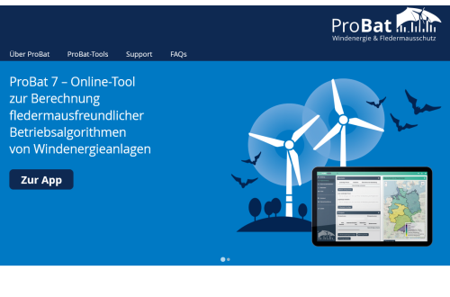 In addition to clear graphics and easy-to-understand texts on how ProBat works, the homepage also contains detailed FAQs for different users - expert offices, authorities and wind power operators.