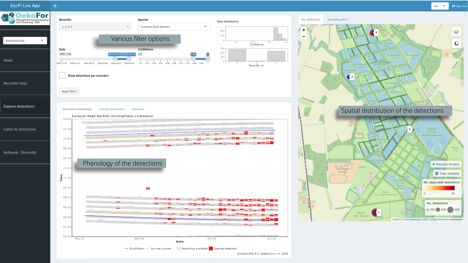 - When and how often was the selected species recorded during the entire (previous) recording period?