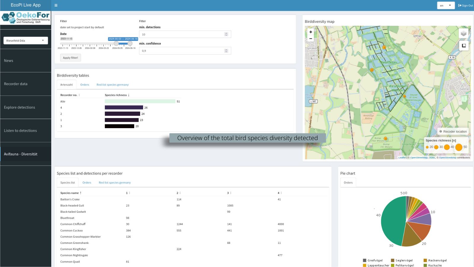 - How many different species have been detected since the start of the project (or in another selected period)?